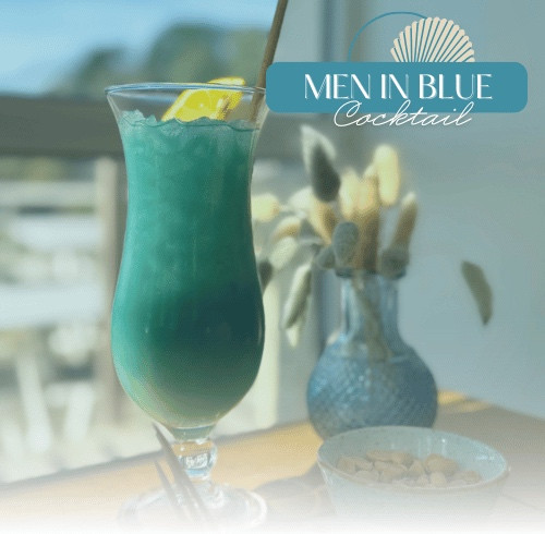 Sous ses reflets d'océan, le Men In Blue réunit la chaleur de la tequila, la fraîcheur du citron vert et la gourmandise des fruits.
